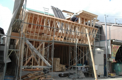 輪郭 3月 21, 2009 高岡の家 ようやく、建物の姿が現れてきました。周辺の町並みにスケールをあわせるよう、 軒先を低くしました。 ホールダウンや筋交い金物の取付確認を行いました。 Comments are closed.