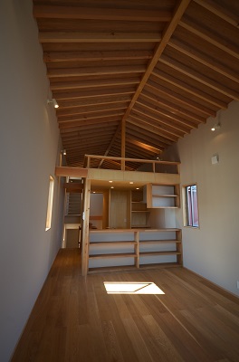 屋根が間近にあり、屋根裏部屋のような場所となっています。