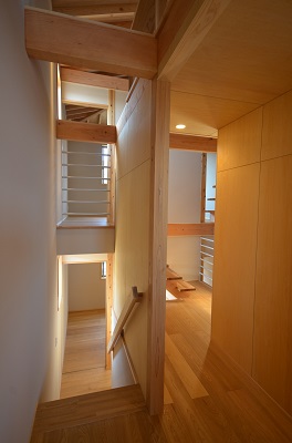 細長い箱の中に木の骨組みが現れ、視線が見通せるようにしました。