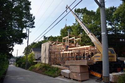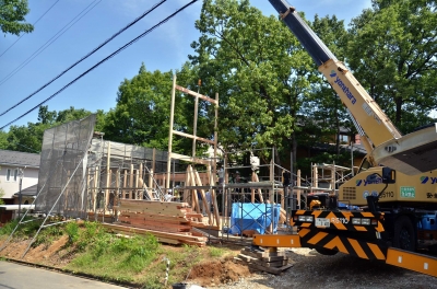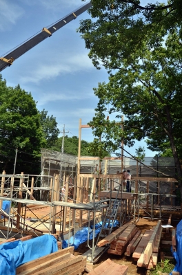大きな木が組立には邪魔になりますが、ここまで育ってきた木の時間を考えると