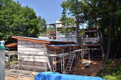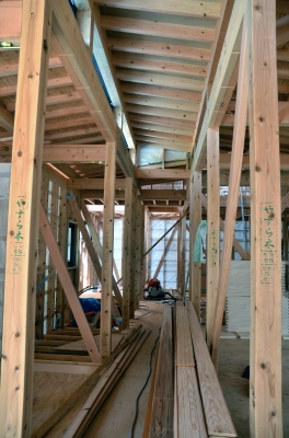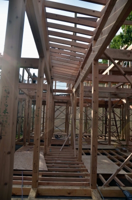 夕方までには骨組みがほぼ完了し、何となく建物の雰囲気も出てきました。